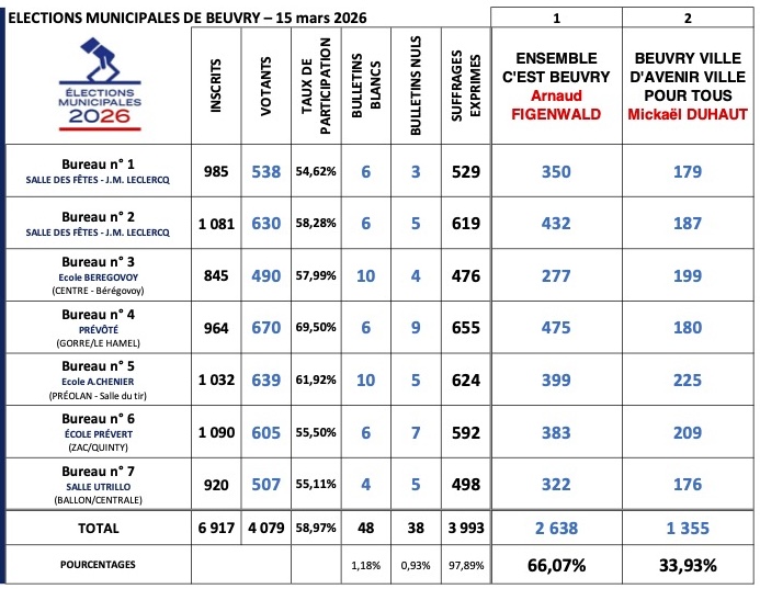 Résultat des élections municipales 2026